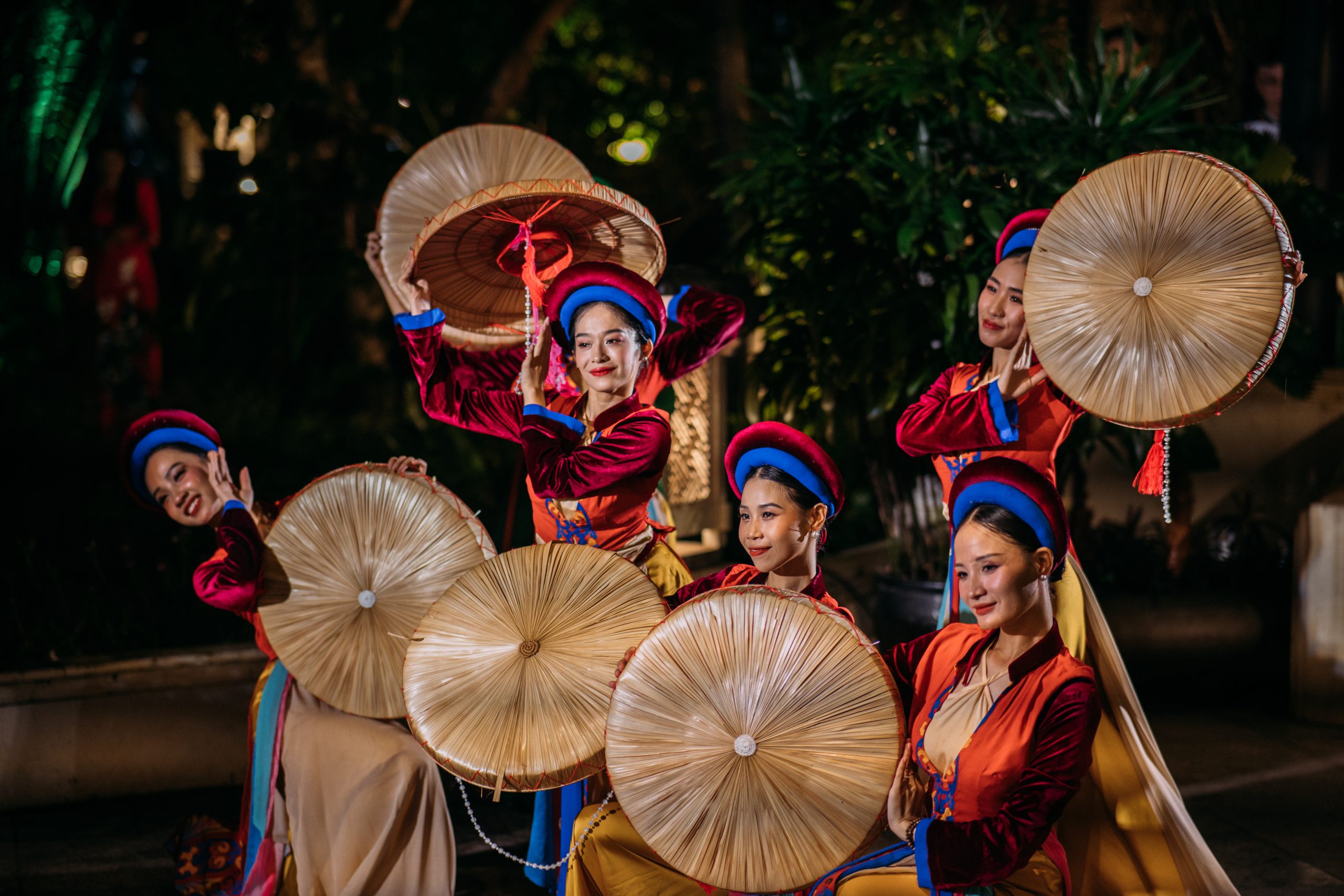 Âm nhạc và trình diễn xuất hiện chậm rãi như những lớp cảm xúc nâng đỡ bữa tiệc. Âm sắc nhạc cụ truyền thống, nhịp điệu tiết chế và phong thái biểu diễn điềm đạm giúp thực khách lắng lại và tạo sự kết nối với người bên cạnh.