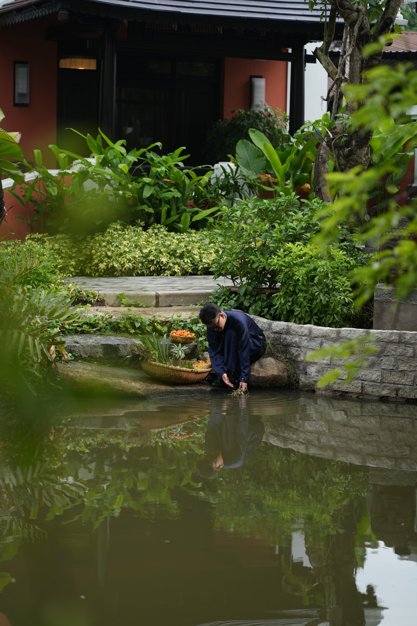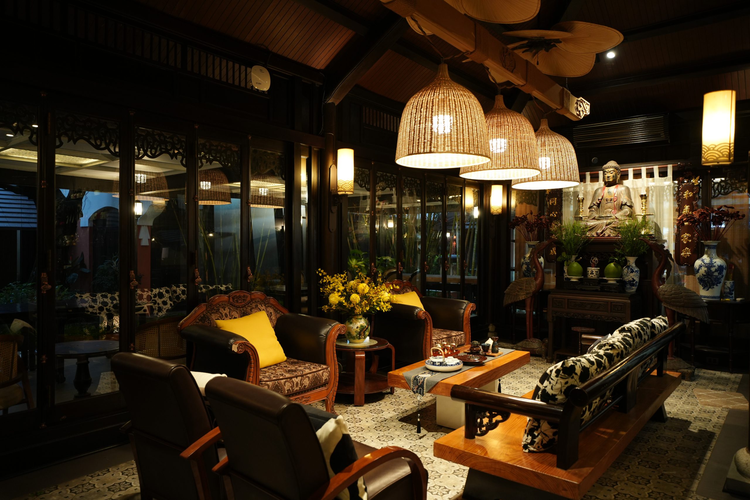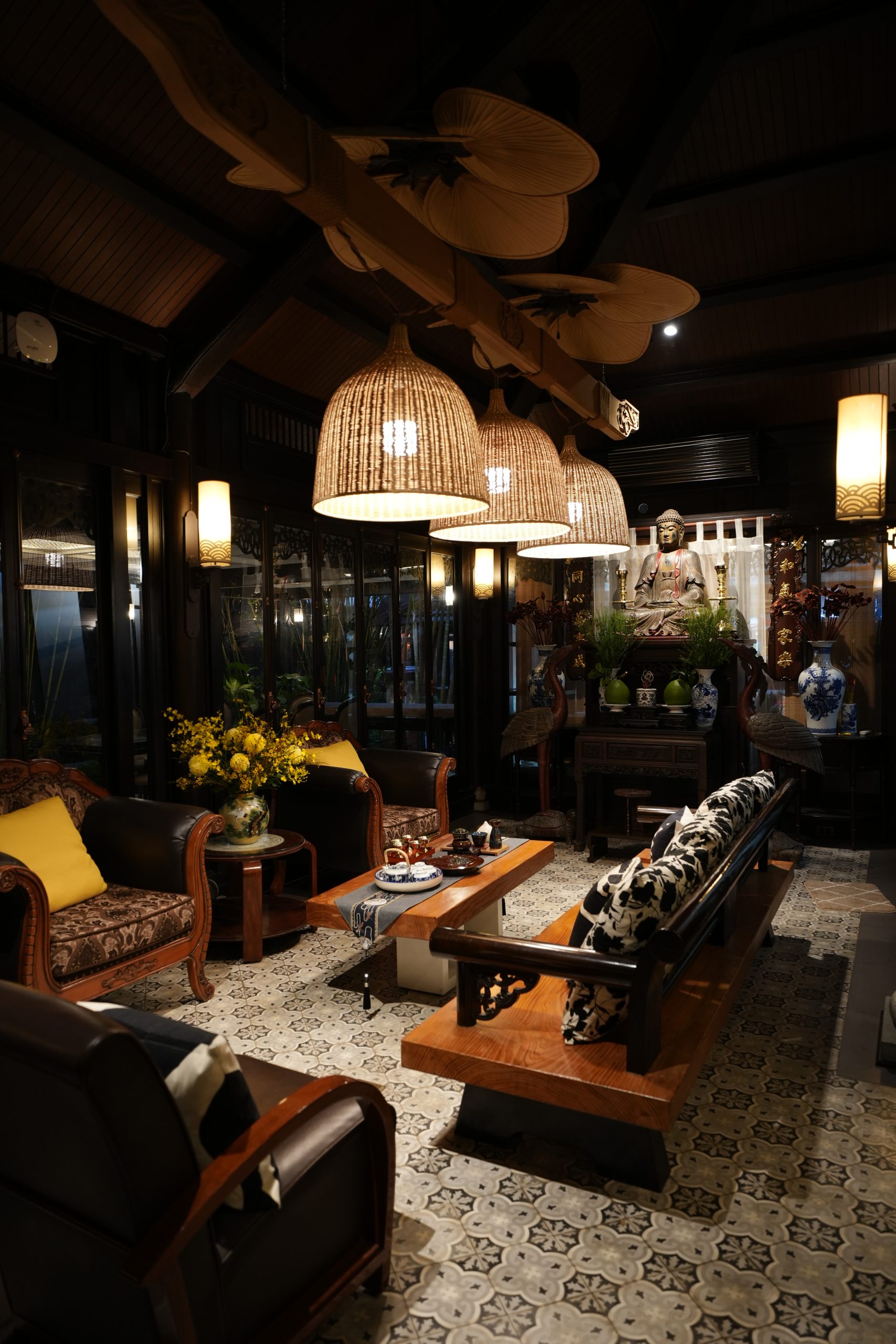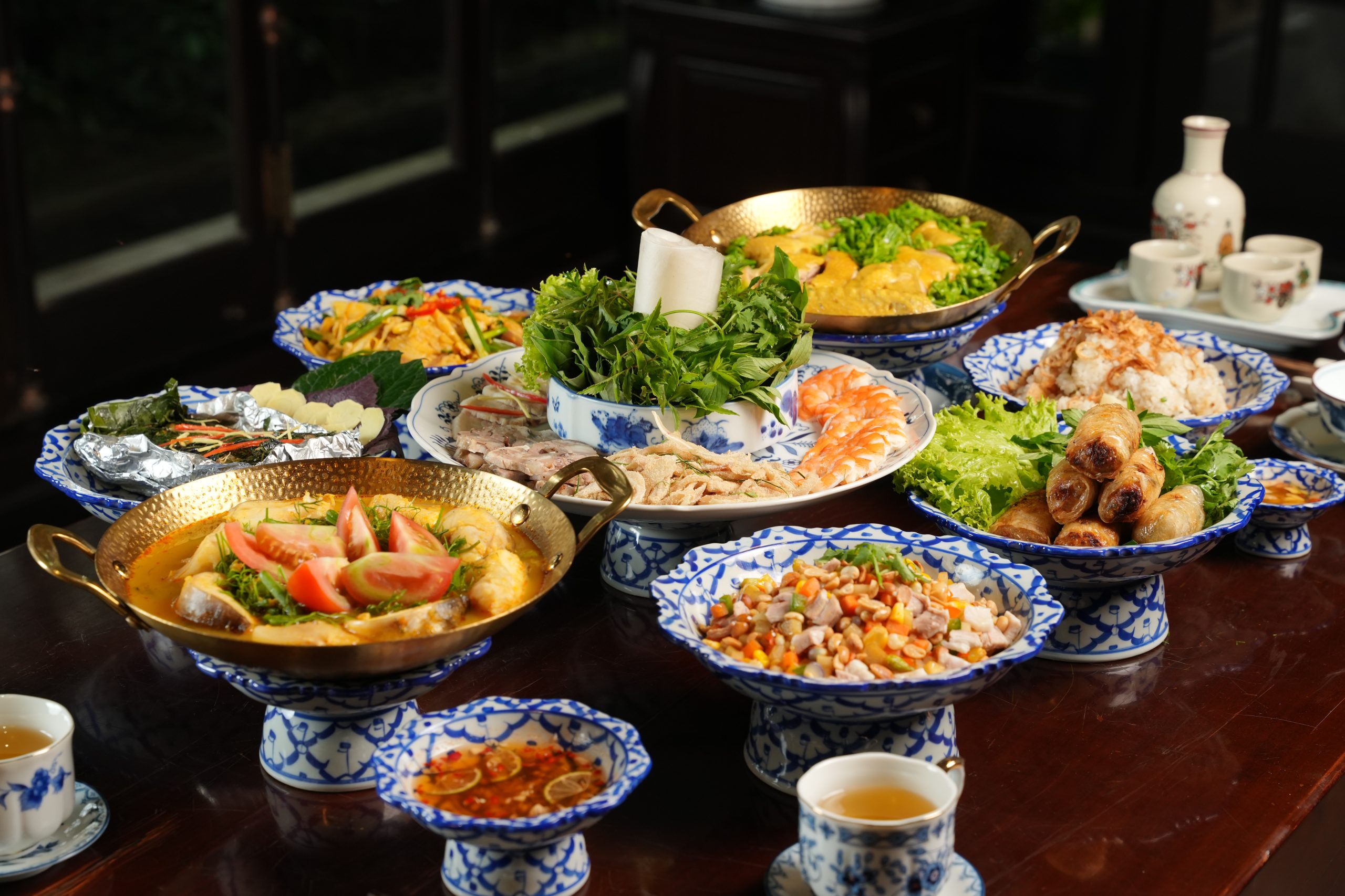 Vào Rằm và Mùng Một, không gian được dành cho Tiệc Chay Phủ Đệ – bữa tiệc thanh tịnh trong ánh sáng và hương trầm.